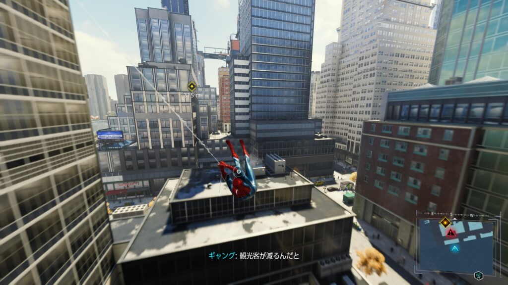 空を飛んだり素早くダッシュしたり移動そのものを楽しめるゲームはたくさんありますが、個人的にはこのマーベルスパイダーマンのゲームでの移動が今まで遊んだゲームで最も楽しかったと感じています🕸️