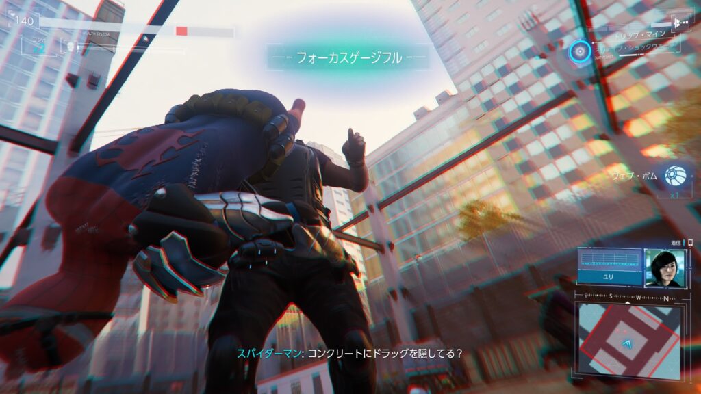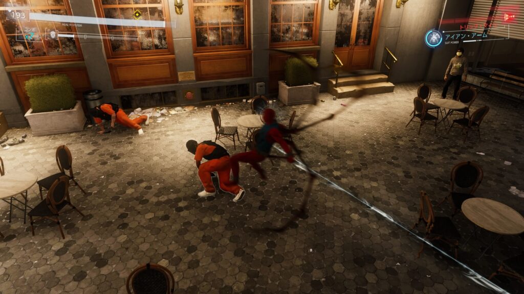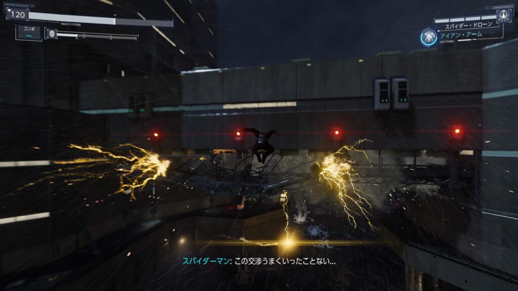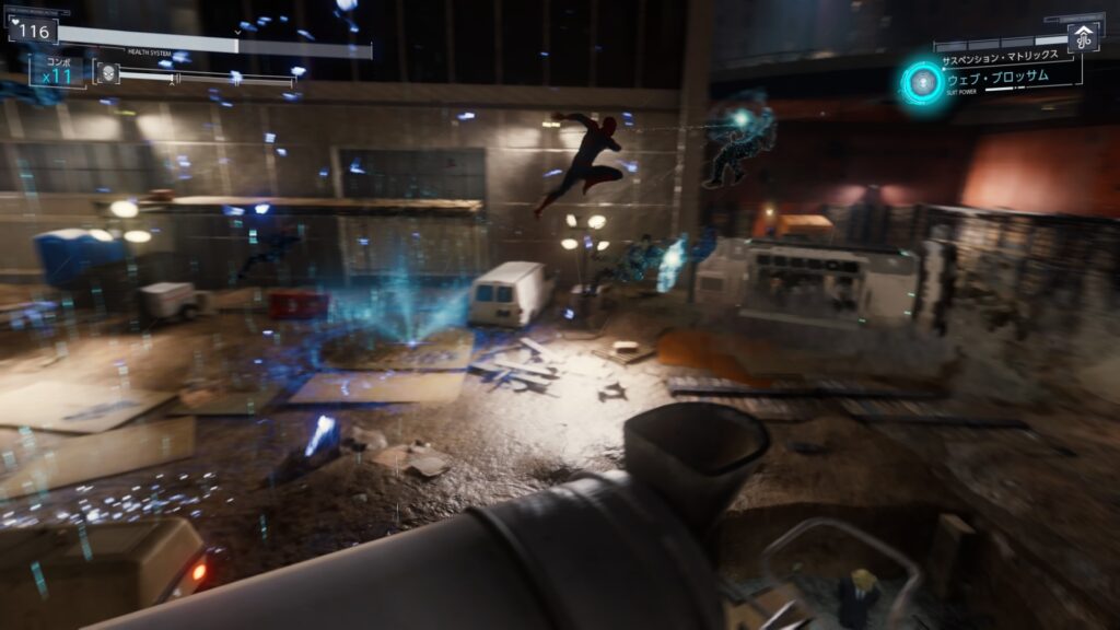どれもウェブと体術を活かしたアクション映画で見たことあるような技が多く、多彩な動きや迫力のカメラ演出がどこで繰り出しても違和感なく発動できるのは素晴らしい開発力のように思います。