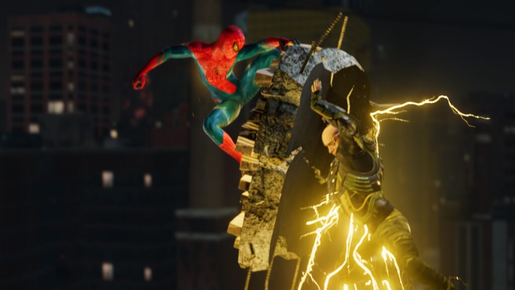 全方位にウェブシューターを大量にばら撒く、一定時間無敵になる、映画でも使用された4本の強靭なアームを生やした強化状態など、おそらく過去作品の色んな題材を元にしたスーツの必殺技で少し違ったバトルを楽しめます。